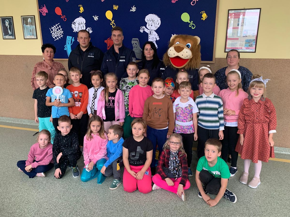 Hrubieszowscy policjanci prowadzą cykl spotkań w szkołach i przedszkolach naszego powiatu opowiadając dzieciom o bezpieczeństwie. Dzisiaj odwiedzili maluchy z Miejskiego Przedszkola Nr 1 i uczniów ze Szkoły Podstawowej Nr 1 w Hrubieszowie. Opowiadali o zasadach bezpiecznego poruszania się po drodze oraz zachowaniu ostrożności podczas codziennych zabaw. Najwięcej radości na dziecięcych buziach wywołała policyjna maskotka sierżant Lew.