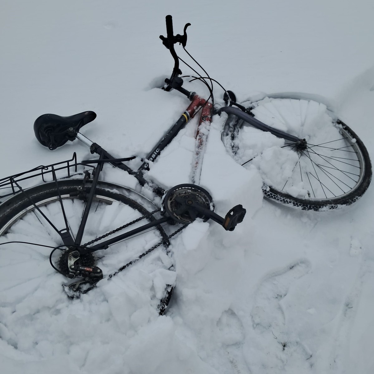Nietrzeźwy rowerzysta, jechał „wężykiem” po śniegu