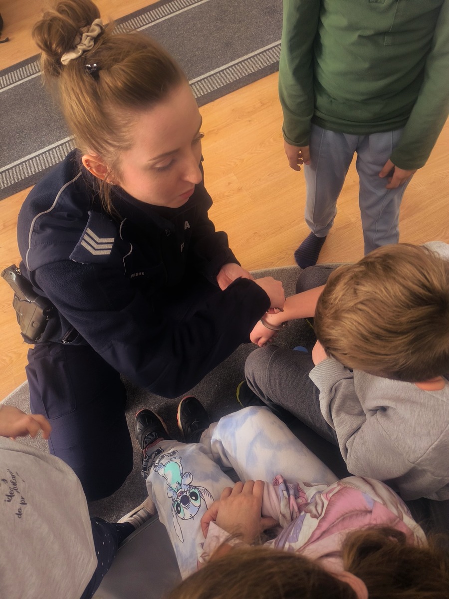 Policjanci opowiadali również o swojej codziennej pracy. Podczas spotkania funkcjonariusze zapoznawali najmłodszych z zawodem, umundurowaniem oraz rekwizytami policjanta.