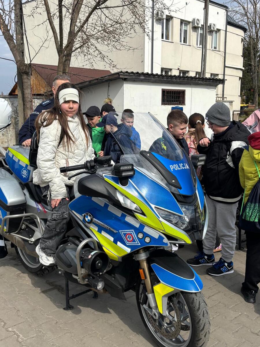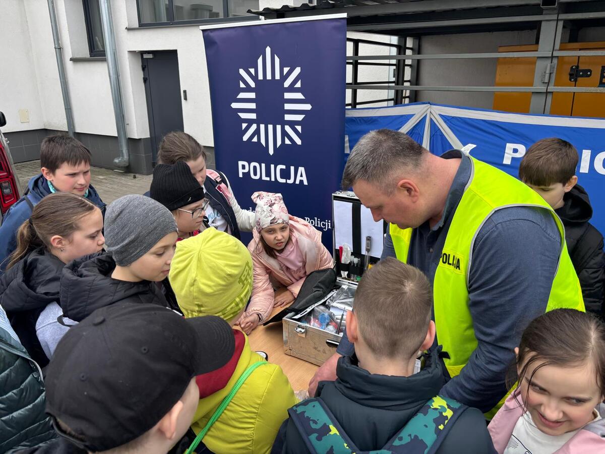 Podczas dzisiejszej wizyty dzieci mogły poznać specyfikę zawodu policjanta. Obejrzeć z bliska sprzęt służbowy oraz wsiąść do policyjnego radiowozu czy obejrzeć motocykle. Rozmawiając z dziećmi, policjanci radzili jak być bezpiecznym uczestnikiem ruchu drogowego, podkreślając ważną rolę elementów odblaskowych. Informowali także o rozsądnym korzystaniu z Internetu.
